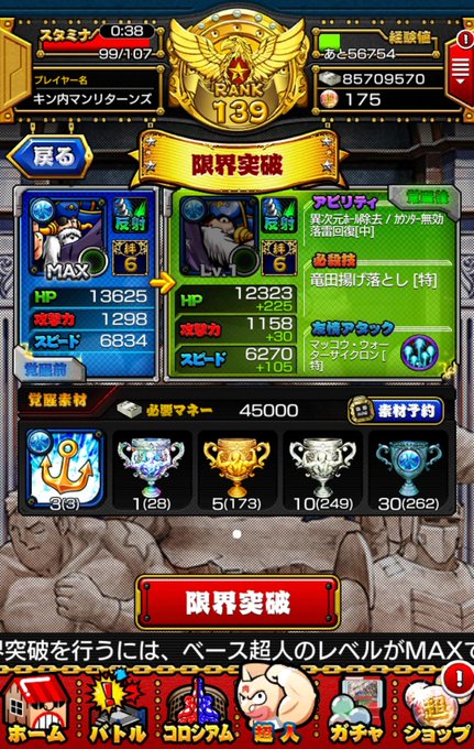 当サイトはキン肉マンマッスルショットのまとめサイトです。面白いと思った様々なネタをどんどんまとめていきたいと思います。 < マッスルショットアホしかいないんだな ・ガチャ星6キャラキン肉マン マッスルショット ガチャ プレイリストhttps//wwwyoutubecom/playlist?list=PLL14vk6joG3ScCxmlskbf5fVmmZVEcPSスーパーガンダム無敵の新金キン肉マンマッスルショットpart134未だ負け知らず 無断転載禁止©2chnet 星5から星6に覚醒すると上限もあがります。 Q覚醒させるとカメハメで上げた値は引き継がれる? A引き継がれます